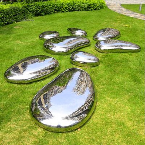 产品:不锈钢鹅卵石雕塑镜面石头造型广场小区草坪摆件