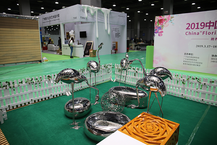 产品:不锈钢仙鹤鹅卵石雕塑镜面动物造型景观摆件