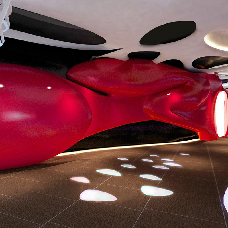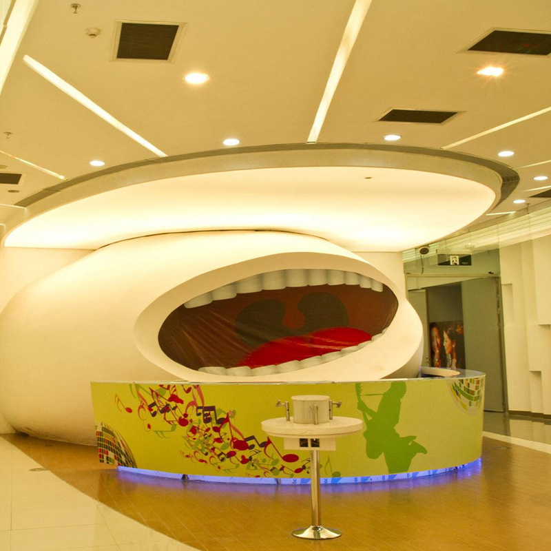 2、商业空间:高端商场通过GRG吊顶模拟“星空穹顶”,结合LED灯光系统营造动态光影效果;连锁餐厅则利用GRG的可塑性将品牌LOGO转化为立体吊顶造型,强化空间记忆点。