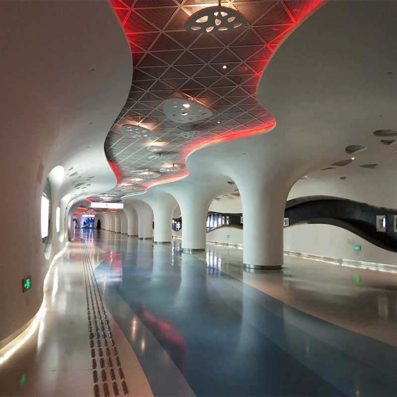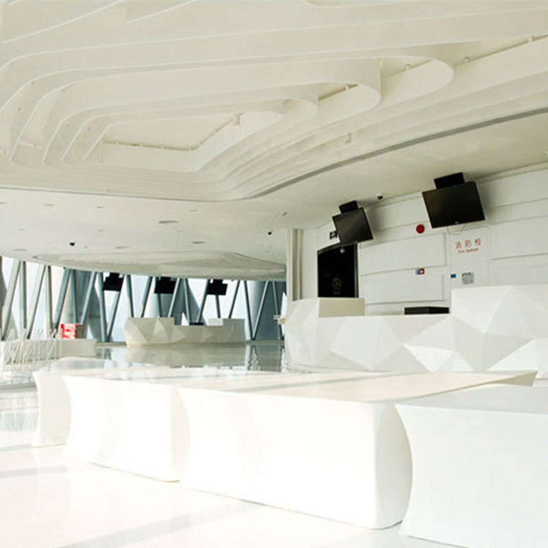 1、文化场馆:剧院、音乐厅中,GRG吊顶既是声学工程的核心组件,也是艺术表达的载体。例如,清远四馆一中心项目利用GRG吊顶的抛物线曲面,将舞台声能均匀反射至观众席,消除声影区,使2000座剧场内声场均匀度达±1.5dB。